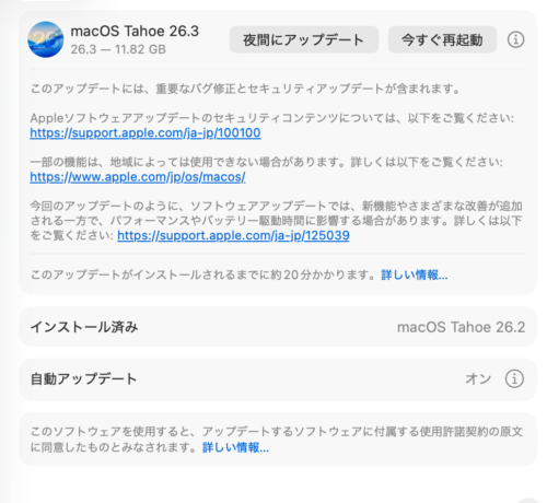 このアップデートでは、重要なバグ修正とセキュリティアップデートを提供し、一部のユーザがMac Studio(M3 Ultra, 2025)でmacOS Tahoeにアップグレードできなかった問題を解決しています。